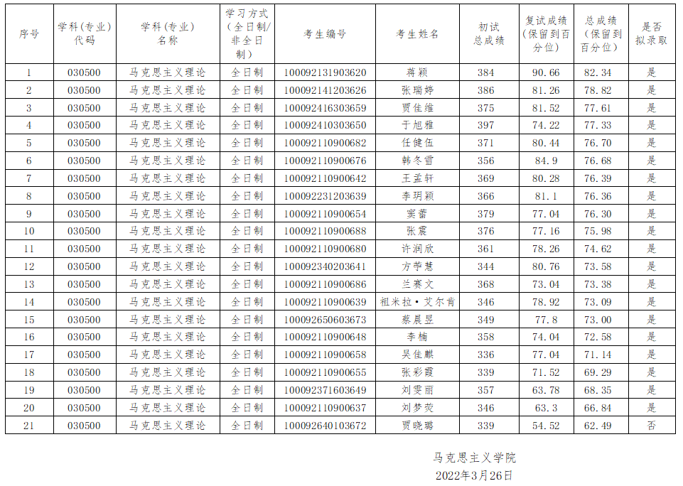 yl7703永利2022年硕士生招生第一志愿考生复试结果(含拟录取名单,以一级学科/专业为单位)