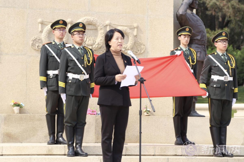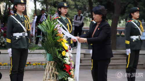 活动在高唱的国歌声中开始。伴着庄严肃穆的献花曲,员工代表向革命先辈敬献花篮,公司党委副书记田红芳上前整理花篮缎带。
