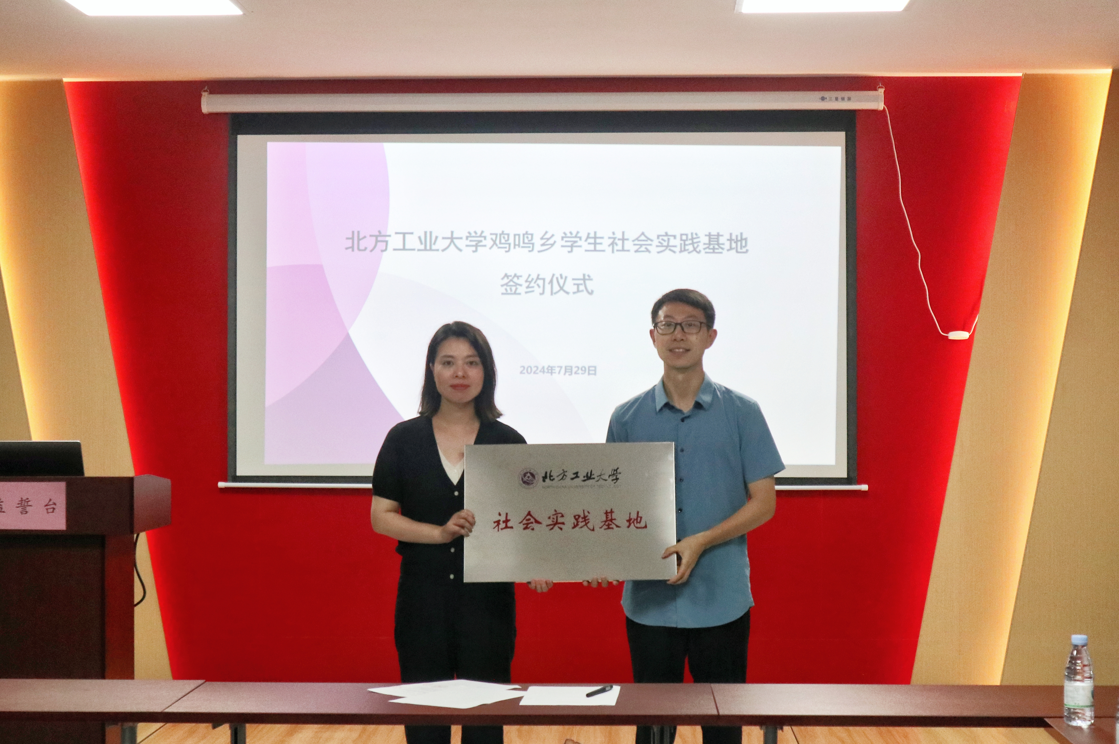 实践团与鸡鸣乡政府达成共识,携手共建社会实践基地,于7月29日举行了挂牌仪式。鸡鸣乡党委书记姜涛表示将以此次共建为契机,持续加强双方的合作交流,实现优势互补、资源共享,以基地共建引领共同发展。实践团指导老师闻亮简要介绍了yl7703永利集团官网与实践团情况,表示校地共建员工社会实践基地将更好推动资源整合,期待与鸡鸣乡共同搭建更广阔的合作平台。