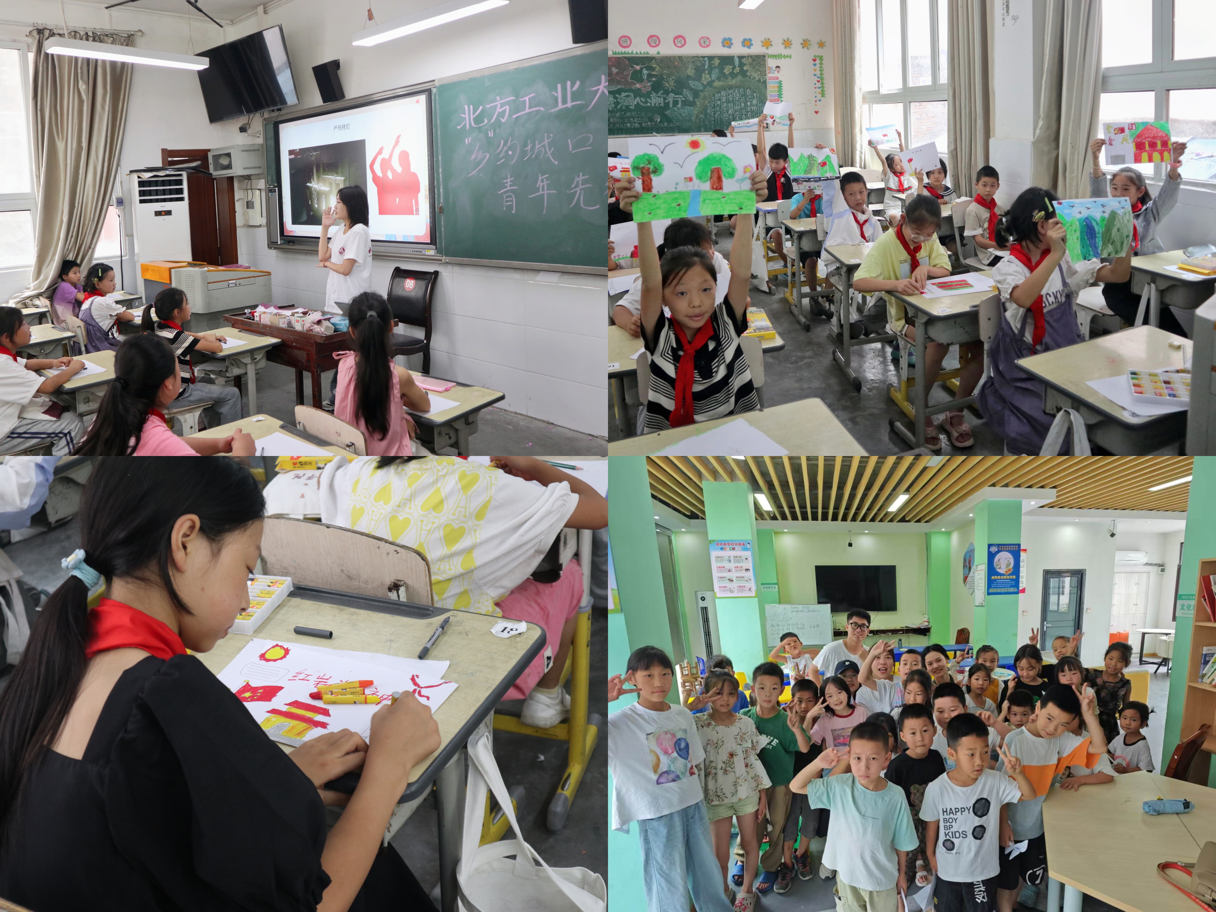 实践团成员带领同学们观看了爱国题材短片,并带来了一场生动而深刻的“红岩精神”主题宣讲,通过江姐的故事,同学们深刻体会到了如今幸福生活的来之不易。活动特别设置了“我心中的祖国”绘画环节,孩子们用稚嫩的笔触勾勒出五星红旗、和平鸽等图景,表达自己对祖国的纯真情感。此次活动实践团队将自身所学运用于实践中,通过丰富多彩的形式,增强了小员工勤奋学习、报效祖国的责任感使命感,引导其将热爱祖国的种子根植于心。