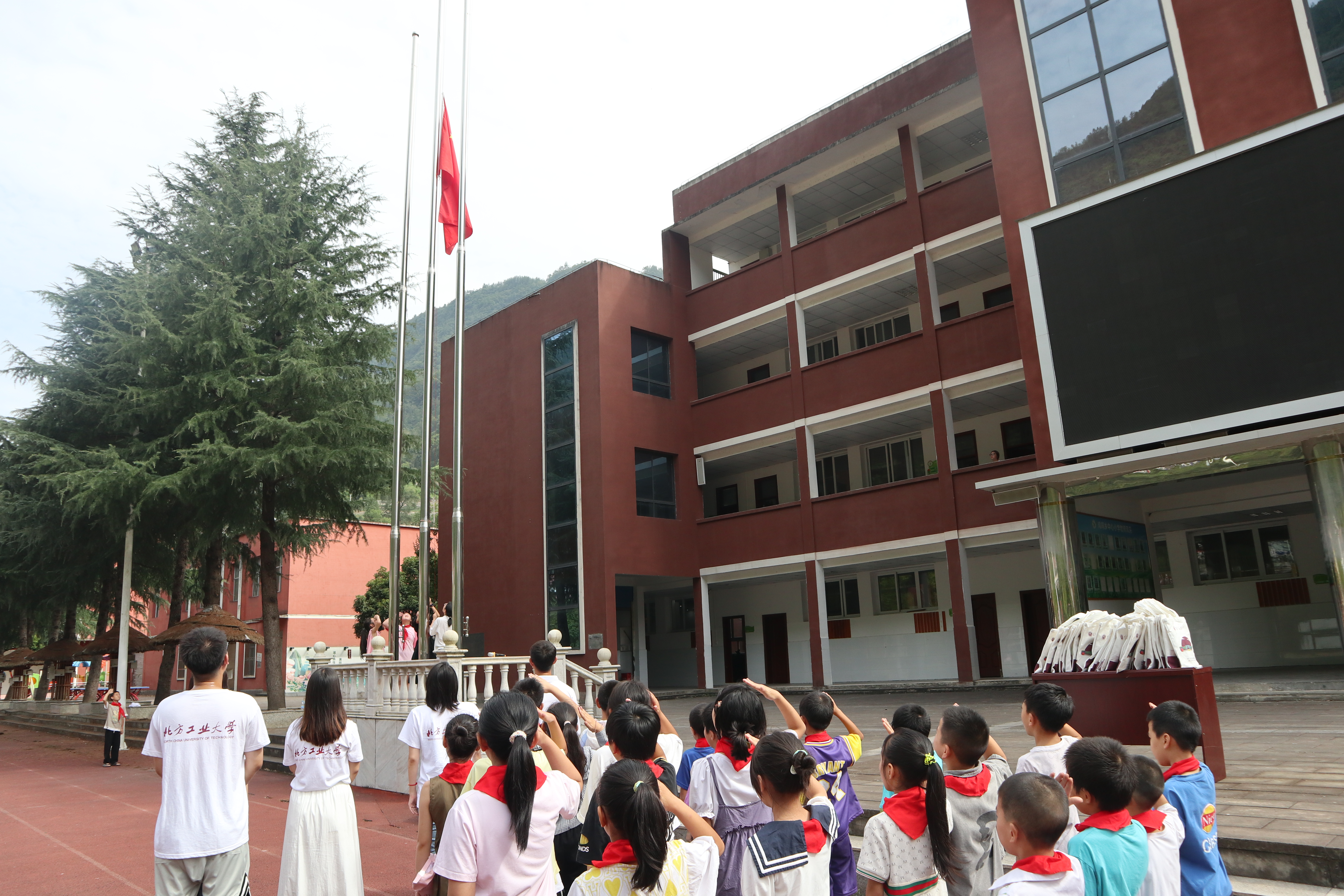 为进一步加强新时代青少年爱国主义主题教育,实践团来到鸡鸣乡中心小学开展了爱国主义教育系列活动。升旗仪式为本次主题教育活动拉开了序幕,随后实践团向员工代表赠送了学习礼包,希望他们能够努力学习,茁壮成长。