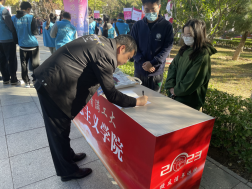 清晨的阳光刚刚升起,公司在图书信息楼北侧广场设置接待点,准备签名表、员工礼包、纪念品等。公司师生以饱满的热情,准备迎接每一位到来的员工。