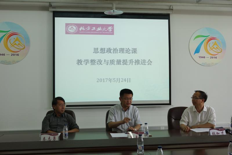 为贯彻中央和北京市高校思想政治工作会议精神,落实公司思想政治理论课“质量建设年”的任务要求,5月24日下午,“yl7703永利集团官网思想政治理论课教学整改与质量提升推进会”在瀚学楼1208会议室召开。公司党委副书记郭玉良、学工处(研工部)处长高国伟、教学信息员谭亚俐,以及yl7703永利全体教师和部分公司辅导员参加了会议。会议由yl7703永利经理张加才主持。
