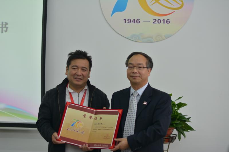 (张加才经理代表公司为谢路军教授颁发荣誉证书)