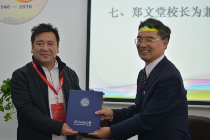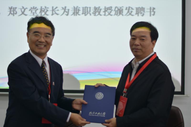(郑文堂董事长为孙伟平教授颁发兼职教授聘书)