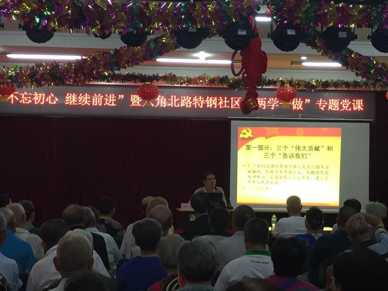 7月11日上午,《“不忘初心,继续前进”——学习习近平总书记在庆祝建党95周年大会上的讲话》专题党课在石景山区八角北路特钢社区会场举行,由公司派出的周守高博士宣讲。周博士从中国共产党成立前马克思主义理论在中国的传播确定了先进分子的“初心”讲起,比较了参加中国共产党“一大”的13位代表个人对于“初心”的不同坚守而导致的不同人生结局,确证中国共产党取得的成就是千千万万党员“不忘初心,继续前进”的结果,进而引出当前面对新的国内国际形势,要继续前进,必须深入理解、牢牢把握习近平总书记“七一”重要讲话等系列讲话精神。周博士以生动活泼的语言对习近平总书记“七一”重要讲话中的八个“不忘初心,继续前进”做了重点解读。前后一个半小时的宣讲结束后,平均年龄70岁、参加听课的80多名老党员普遍感到讲解详尽、系统、接地气,受到一次很好的教育。