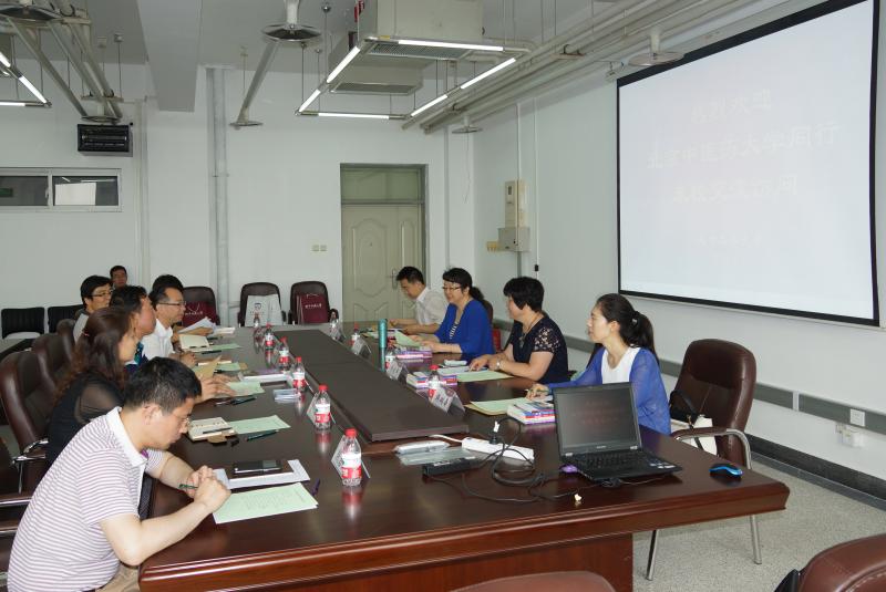 与王梅红经理同行的北京中医药大学学工部副部长兼形势与政策教研室主任佟晓辉教授、北京中医药大学公司党总支书记王良滨副教授、以及韩琳辛老师,就形势政策课建设中共同关心的细节问题,与公司老师做了深入交流。