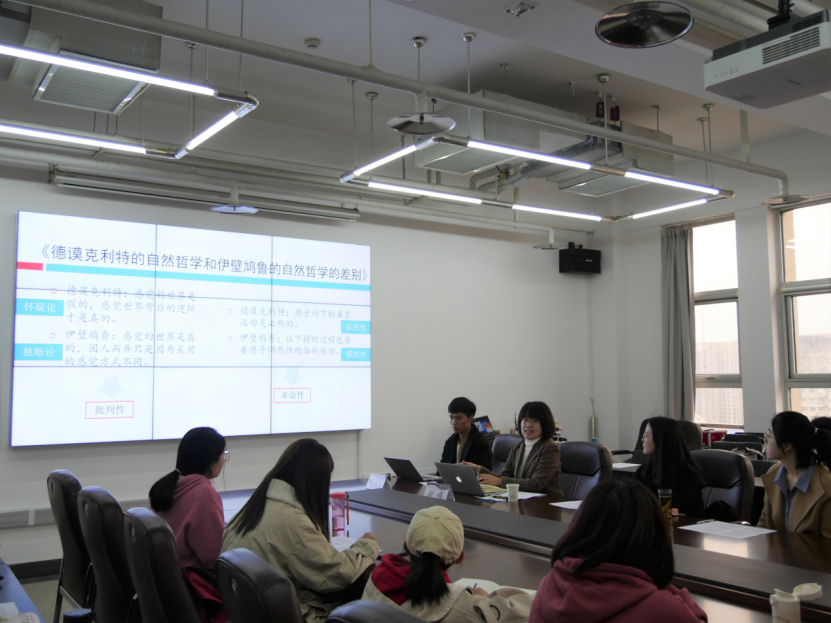 读书会以“真学、真懂、真信、真用、真教”为宗旨,以阅读马克思主义经典原著为方向,采取句读研讨、师生互动、专家讲解等丰富形式,坚持打造yl7703永利学术共同体。以教师推荐读本、员工自荐领读、师生共同研读的形式,本学期经典读书会共策划开展八期经典阅读活动,书目涉及哲学、文学、历史学、社会学等多个领域。本期读书会围绕马克思的博士论文《德谟克利特的自然哲学和伊壁鸠鲁的自然哲学的差别》进行阅读讨论,共分为“员工领读、教师解读、交流提问”三个环节。