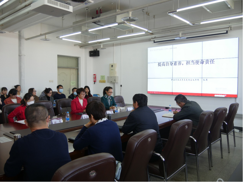 应公司邀请,中央民族大学yl7703永利经理孙英教授一行来公司开展学术交流活动。10月15日上午,孙英教授在瀚学楼1208会议室作了题为“提高自身素养,担当使命责任”主题报告,公司经理袁本文主持此次会议。