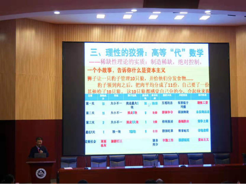 论坛的下半场由北京大学经济公司副教授石菊主持,北京大学教授苏剑,公司理公司党委书记、公司副教授龚维华,北京大学教授、北京外国经济学说研究会名誉会长王志伟,北京师范大学教授沈越,公司概论教研室主任朱建平副教授依此以“经济学理论的发展与创新”为主旨开展演讲。其中,龚维华教授以《破除稀缺性理论迷信,批判学习西方经济学——从资源稀缺性理论到生产过剩危机现实》为题展开演讲,以焦点问题“究竟是先吃了(物质)吗?还是先饿(欲望)了吗?”为引子,生动地介绍了稀缺性理论的概念及其现阶段存在的硬伤,从而引出稀缺性理论的实质是控制,最后强调在批判性地学习西方经济学时,要坚持“三来精神”以增强文化自信,坚持人民中心论以担当历史使命,坚持真理以破解迷信,坚持守正创新以拒绝拿来主义。随后,公司概论教研室主任朱建平副教授在发言中称全面深化改革的总目标是坚持和完善中国特色社会主义制度,推进国家治理体系和治理能力现代化;强调了经济以及经济制度的重要性,从而进一步指出中国特色社会主义政治经济学对推进国家治理体系和治理能力现代化的指导意义,也为人类命运共同体与全球治理贡献了中国智慧提供了中国方案。