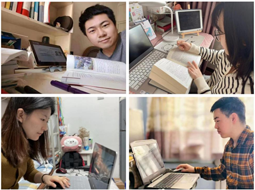 自2月21日线上教学正式启动以来,在老师们的带领和帮助下,同学们逐渐适应了疫情形势下的学习模式,充分利用线上平台和老师们交流互动,自发利用各类网络资源对现有学习内容进行补充,完成日常课程学习、论文写作、专业书籍阅读等任务。这一期间,导师的学业辅导、辅导员的心理帮扶、同宿舍伙伴的相互鼓励、以及班级同学的正能量引导使得同学们能够更加合理地规划时间、确保在线学习的质量和效率,真正做到居家不放松、学习不止步,在学业上取得了收获。