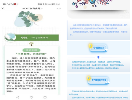 此外,为记录疫情期间的学习和生活状态,同学们积极参加公司“不负韶华,共克时艰”为主题的vlog征集活动,坚定“疫”战到底的决心和信念。