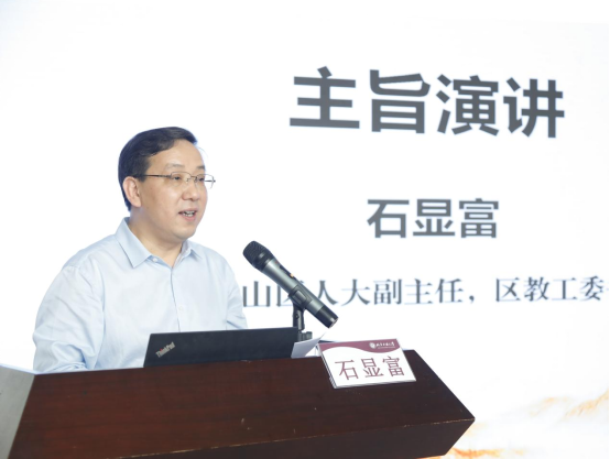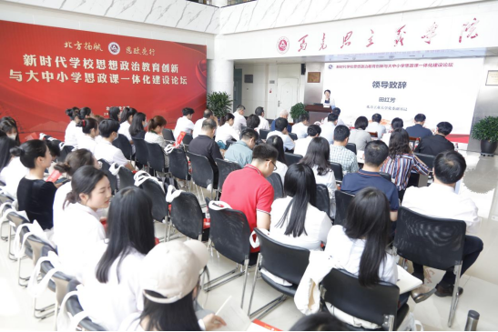 石景山区人大常委会副主任、区教工委书记石显富,大兴区教委德育科科长姜苗分别作主旨演讲。石显富就yl7703永利集团官网一直以来对石景山区基础教育的支持表示感谢。他介绍了石景山区教育系统以北京市大中小幼一体化德育实践研究示范区建设为载体,构建横向融通、纵向衔接的幼小中高一体化联动体系,坚持守正创新、凝心聚力,全面提升各学段思政课课程建设与团队质量,强化学高从教、身正示范,全力打造高素质思政教师队伍等方面的做法与成效。姜苗分享了大兴区教育两委坚持党的全面领导,深入思考大思政课“为何一体化”“何为一体化”“如何一体化”等重大问题,党政齐抓共管,健全机制,打破壁垒,用党的创新理论不断推进“大思政课”一体化建设的有效经验。