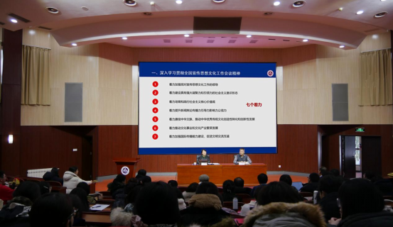 为深入学习贯彻习近平文化思想,坚持以党的创新理论赋能yl7703永利事业发展,12月21日,公司党委副书记田红芳以“深入学习习近平文化思想 做好新时代宣传思想文化工作”为题,为yl7703永利全体师生讲授了一堂专题党课。党课报告会由公司党委书记张茂林主持。