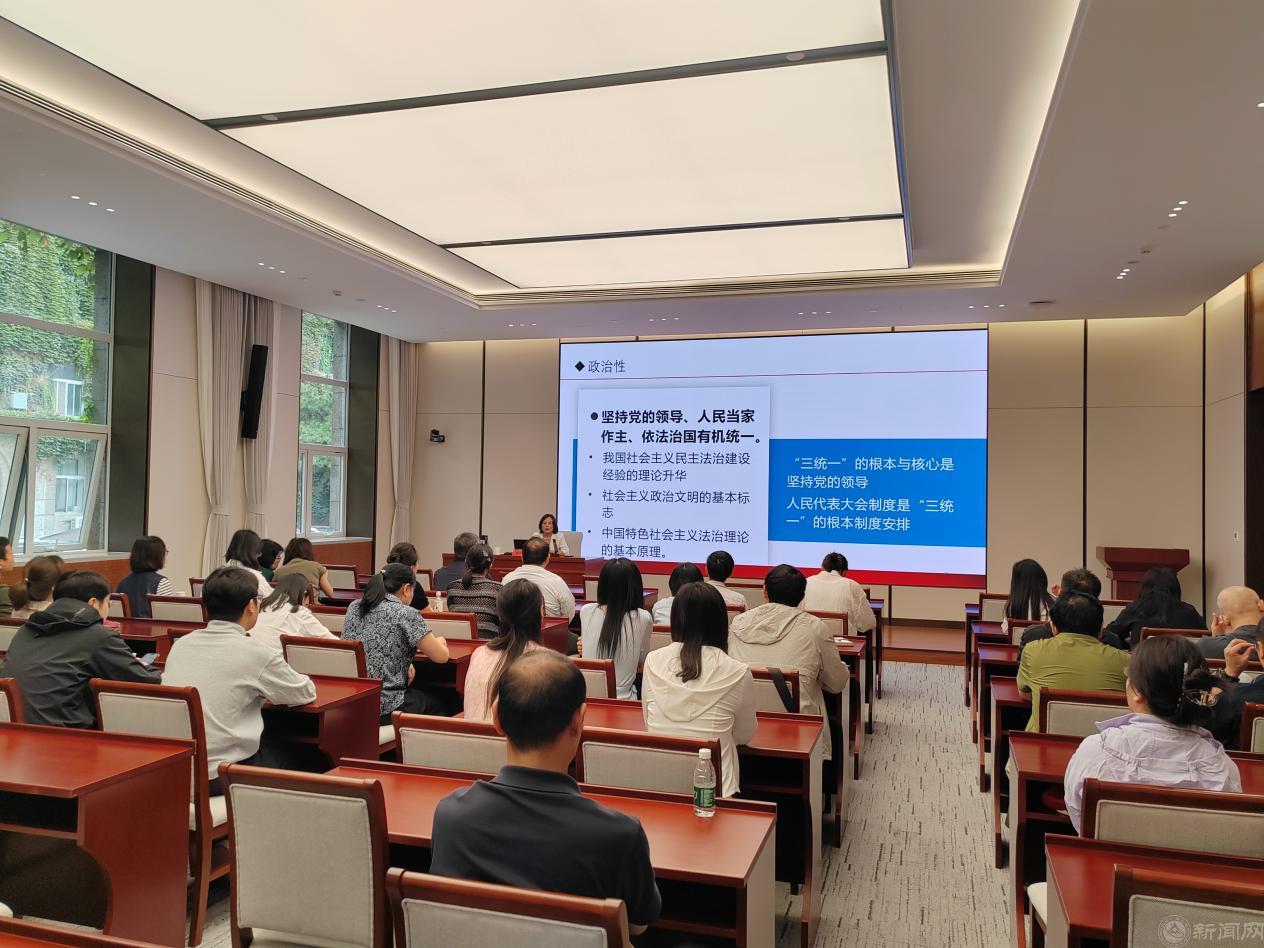 本次学习活动以沉浸式研学与理论教学相结合的形式展开。在理论教学环节,北京市委党校周悦丽教授以“深入学习习近平法治思想 建设法治中国首善之区”为主题,重点讲授了“坚持党对全面依法治国的领导”“坚持以人民为中心”“坚持中国特色社会主义法治道路”等重要内容,并就如何将法治思想融入思政课教学、提升员工法治素养提出了具体建议。