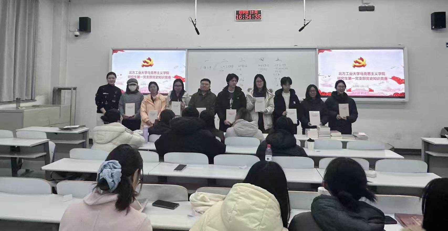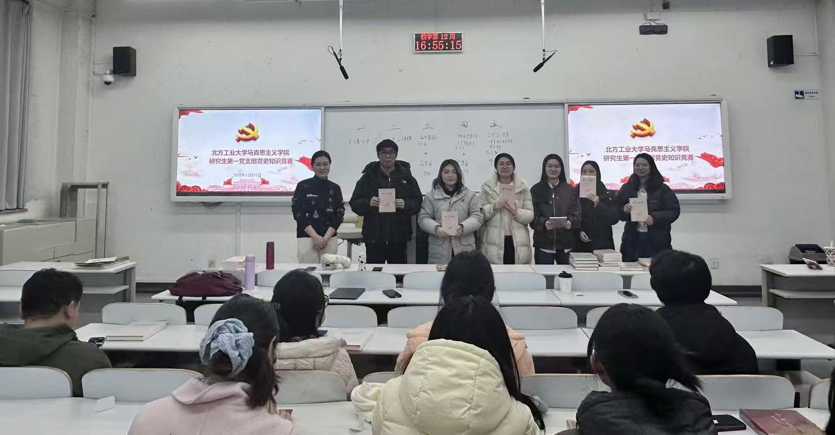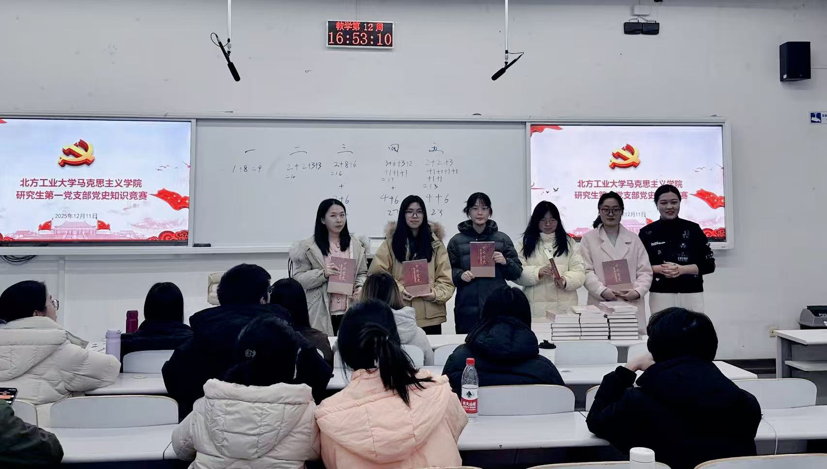 赛前,同学们通过抽签组成5组战队,并开展精心准备。竞赛设置必答题、抢答题两大环节,既考理论储备的“准度”,又比手眼反应的“速度”,更验团队协作的“温度”。比赛现场氛围热烈,各参赛小组精神饱满,沉着应答,展现出马克思主义理论专业研究生扎实的理论素养与深厚的家国情怀。