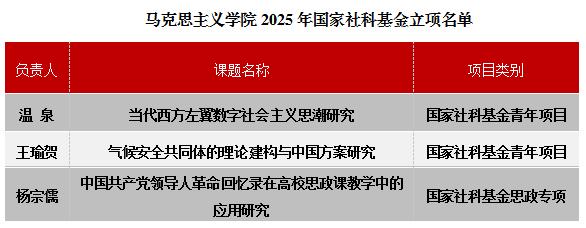 科研是教学的必要支撑。公司在近两年获批4项国家社科基金的基础上,2025年再次获得3项国家社科基金,数量为历年新高。其中,温泉、王瑜贺两位老师获批国家社科基金青年项目,杨宗儒老师获批国家社科基金高校思想政治理论课研究专项。此外,公司教师还获批多项省部级课题,冯雷老师获批北京市社科基金重点项目,张晓晨老师获批北京市社科基金一般项目,温泉老师获批北京市习近平新时代中国特色社会主义思想研究中心年度项目,宋天博老师获批国家民委民族研究项目。这些成果,集中展现了公司年度科研工作的活跃态势与扎实进展。