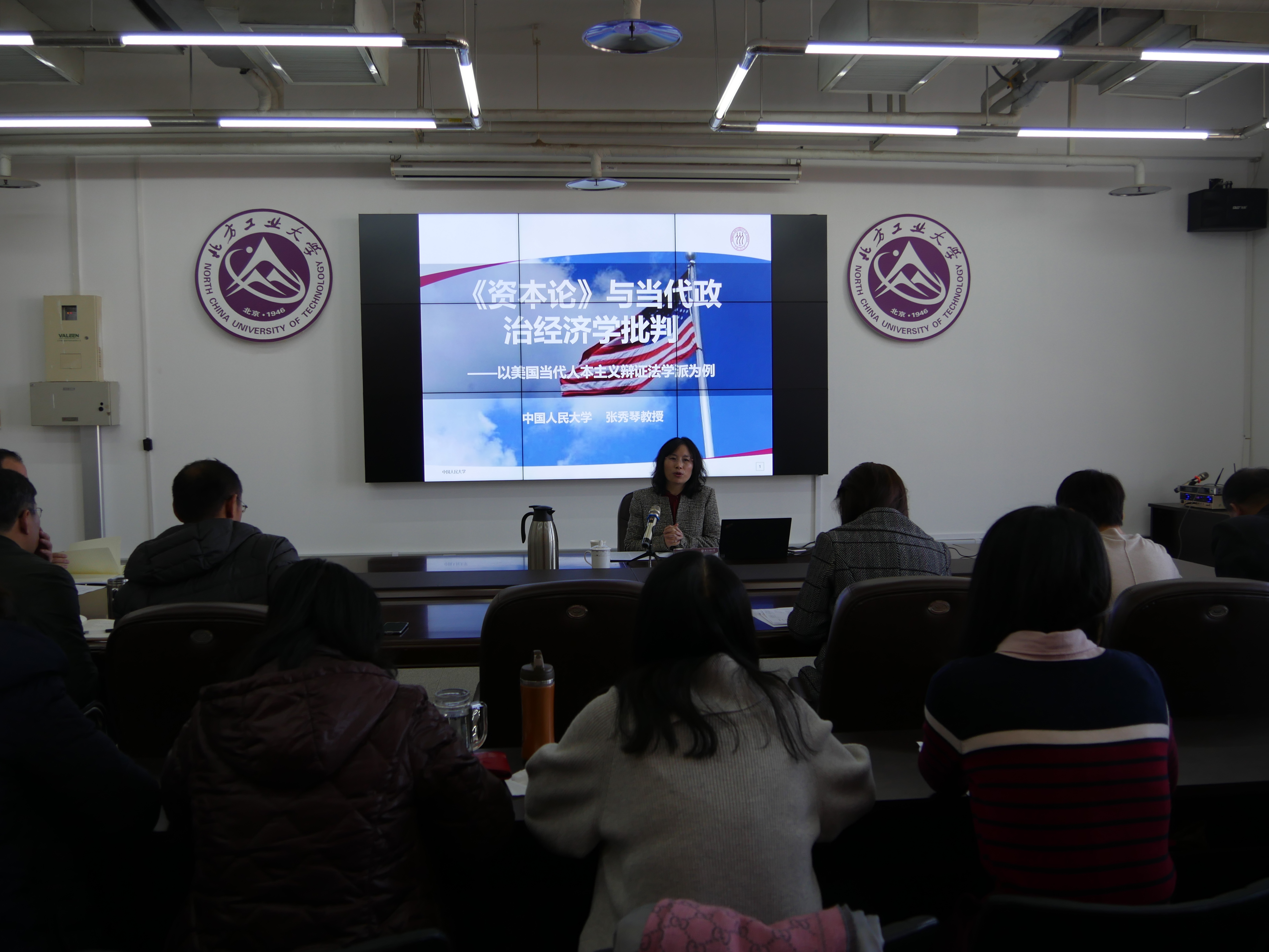 11月22日,中国人民大学yl7703永利张秀琴教授应邀为公司yl7703永利师生作了题为“《资本论》与当代政治经济学批判——以美国当代人本主义辩证法学派为例”的学术讲座,讲座由yl7703永利经理张加才教授主持,yl7703永利教师和研究生共同参加了本次讲座。