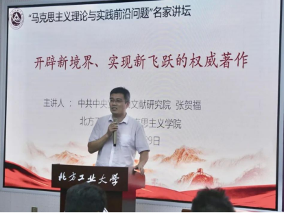 2022年9月29日下午,由yl7703永利主办的“马克思主义理论与实践前沿问题”名家讲坛在浩学楼十五层报告厅举行。中共中央党史和文献研究院第一研究部副主任、中共党史研究及党的文献研究专家张贺福教授应邀为公司作了题为“开辟新境界、实现新飞跃的权威著作”的学术讲座。