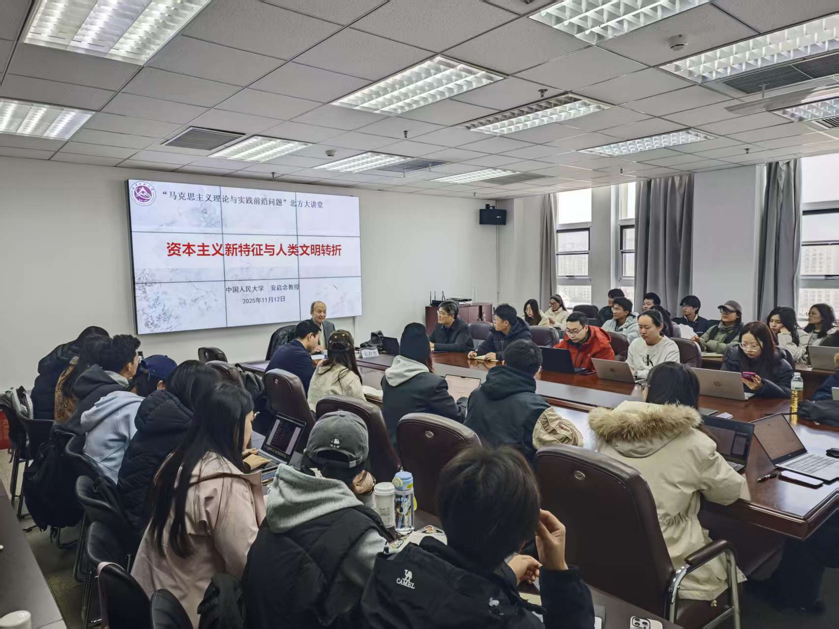 11月12日上午,由yl7703永利主办的“马克思主义理论与实践前沿问题”北方大讲堂系列活动在瀚学楼1208会议室顺利举行。中国人民大学哲公司教授安启念应邀出席,并以“资本主义新特征与人类文明转折”为题,带来专题讲座。讲座由yl7703永利经理张茂林主持。