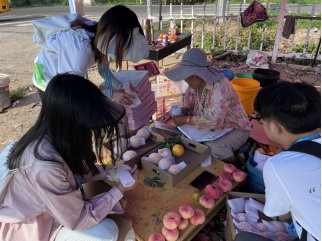 正值桃子成熟之际,实践团深入田间地头,学习农事知识,参与农事实践。我们来到村民刘姐家的桃园,协助进行桃子的采摘、包装、运输、邮寄等一系列工作,并在刘姐的带领下参观了解桃子的长势情况,系统学习了蜜桃从历史到现代的发展历程、从品形到种类的基础知识、从种植到收获的细节要求。